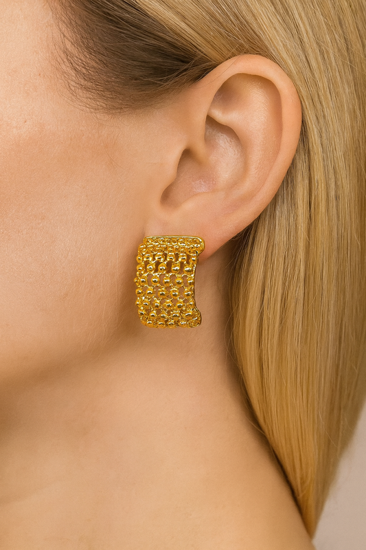 Retro design geometric square gold earring