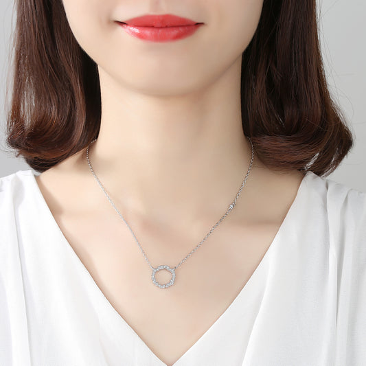 Simple crystal round silver necklace