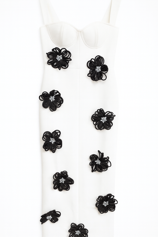 White long dress with black flower
