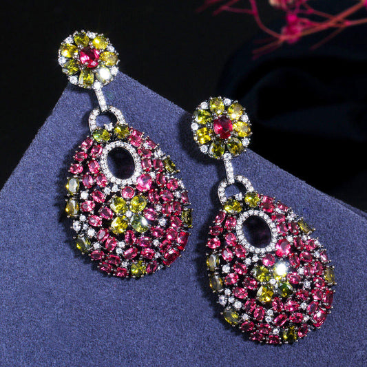 Hot Charming Design Cubic Zirconia Rose Red Long Drop Earrings for Women