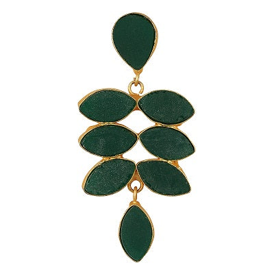 Leaf Style Green Clour Cubic Diamonds With Blue Pearl Dangle Earring