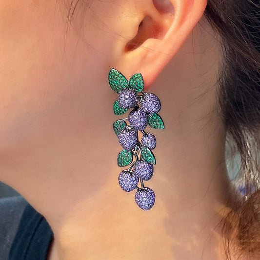 micro pave cubic zirconia purple green grape cluster dangling drop earring