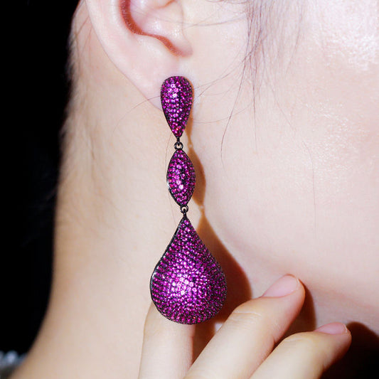 Luxury full micro pave cubic zirconia red long dangle earring for girls