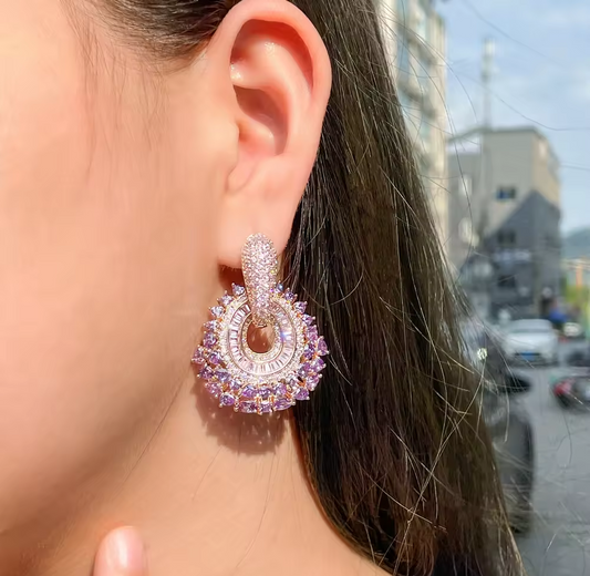 Purple Pink Cubic Zirconia Pave Dangle Earrings