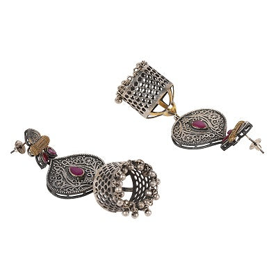 Silver plated multi colour cubic stone big heart shape stud earring for women