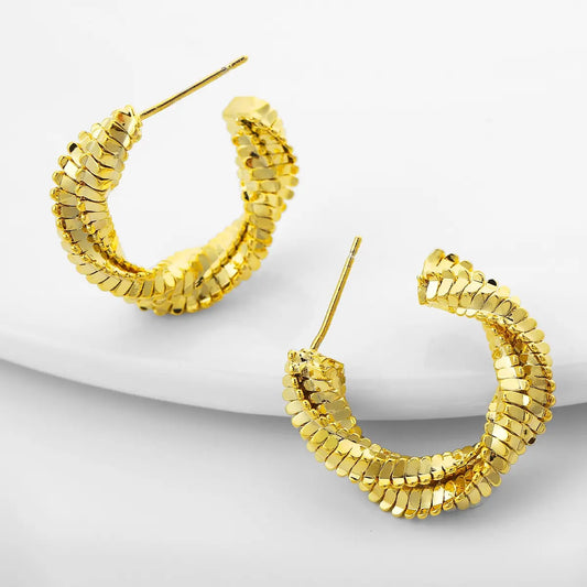 Twisted Retro Big Chunky Flower Hoop Earrings