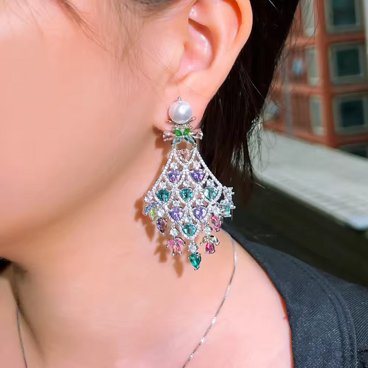 Chunky Cubic Zirconia Pave Multi colour Large Long Chandelier Drop Dangle