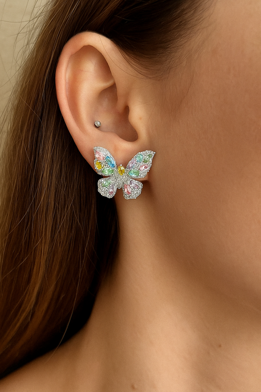 Butterfly Shape With Multi Colour Cubic Diamonds Stud Earring
