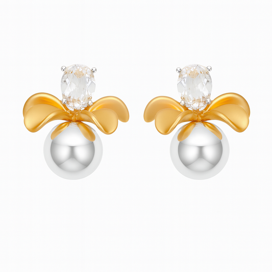 Trendy gold flower with silver drop stud earring
