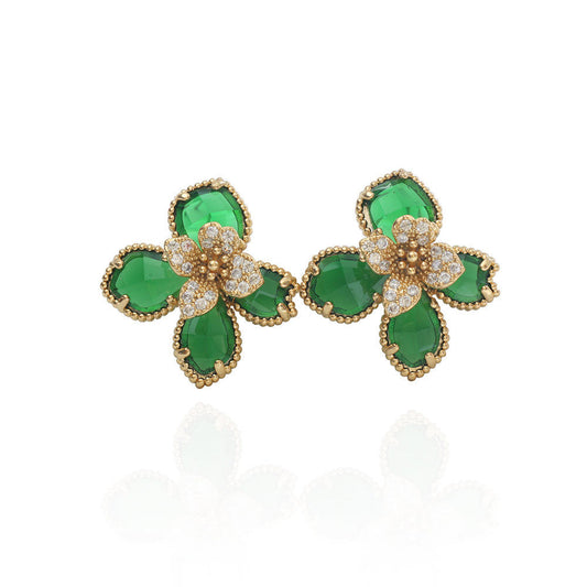 Charming Green Flower Zirconia Diamonds Gold Stud Earring