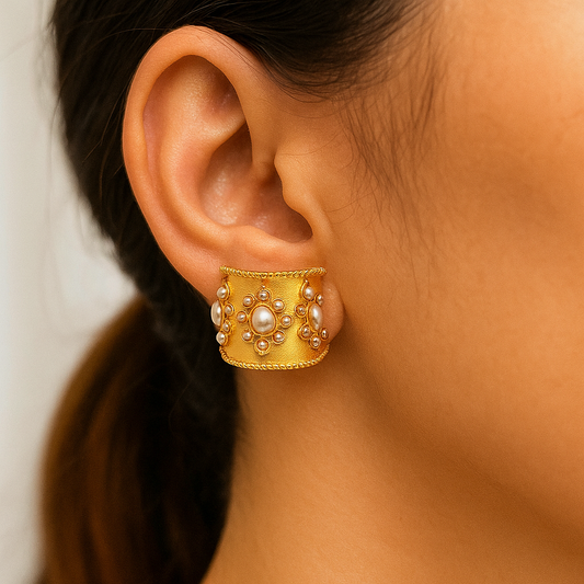 Fancy Silver Pearl Stud Earring