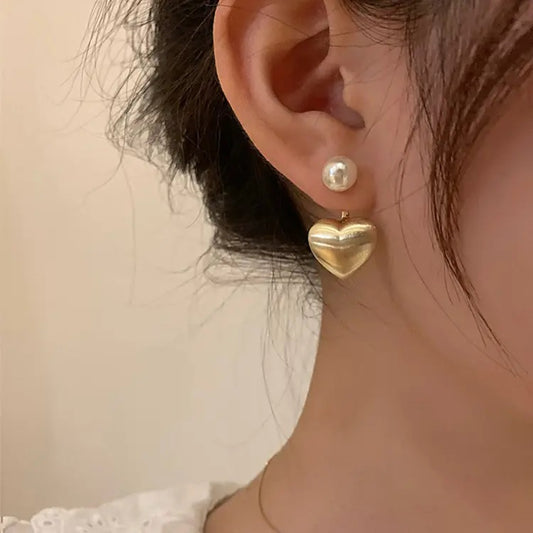 Gold matte finish heart earring