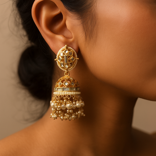 Gold and white jumki earring
