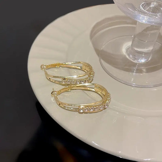 Golden shiny crystal earring hoop
