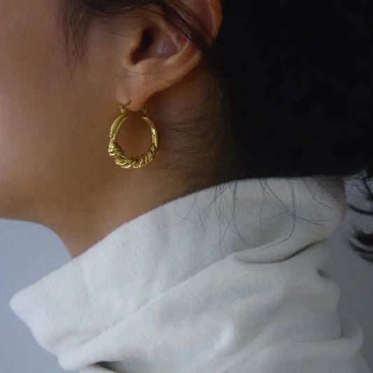 Golden Trendy Hollow Metal Hoop Earring