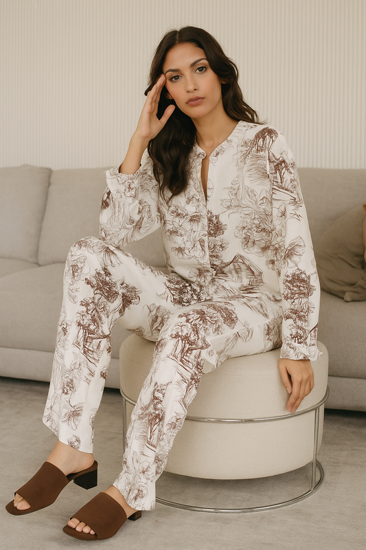 Fashionable 2 Piece Beige Top With Pant For Office Wear For Women's