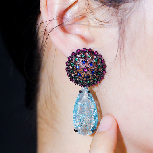 Light blue water drop broken iced cubic zircon diamonds drop dangle earring