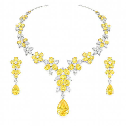 Cubic Zirconia Green and white diamonds luxurious necklace