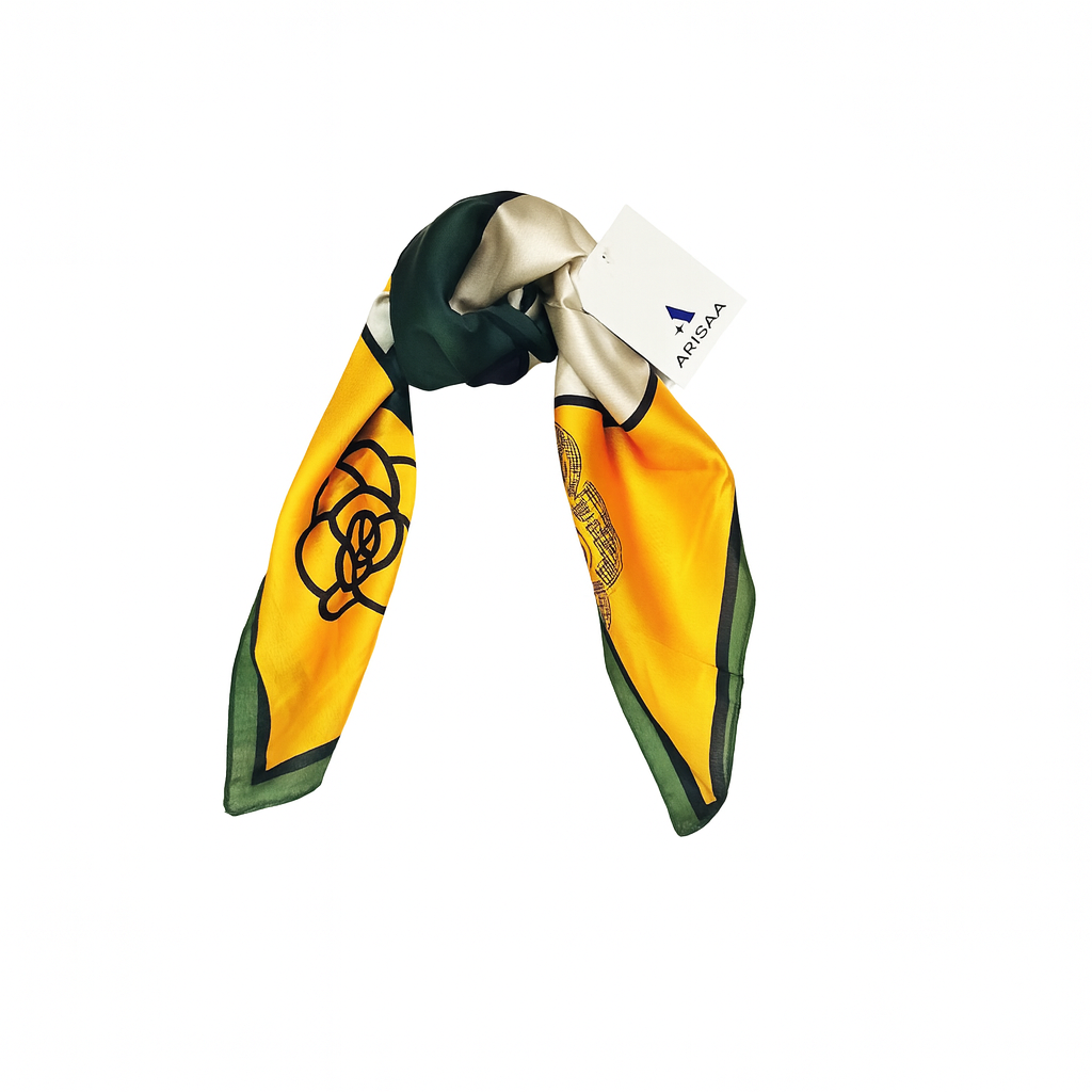 Elevate your accessory collection with this exquisite yellow and purple scarf, featuring a charming flower design that adds a touch of elegance to any outfit. Crafted from high-quality materials, this scarf offers both comfort and style, making it a versatile addition to your wardrobe. Perfect for any season, it can be worn as a statement piece or layered for added warmth.