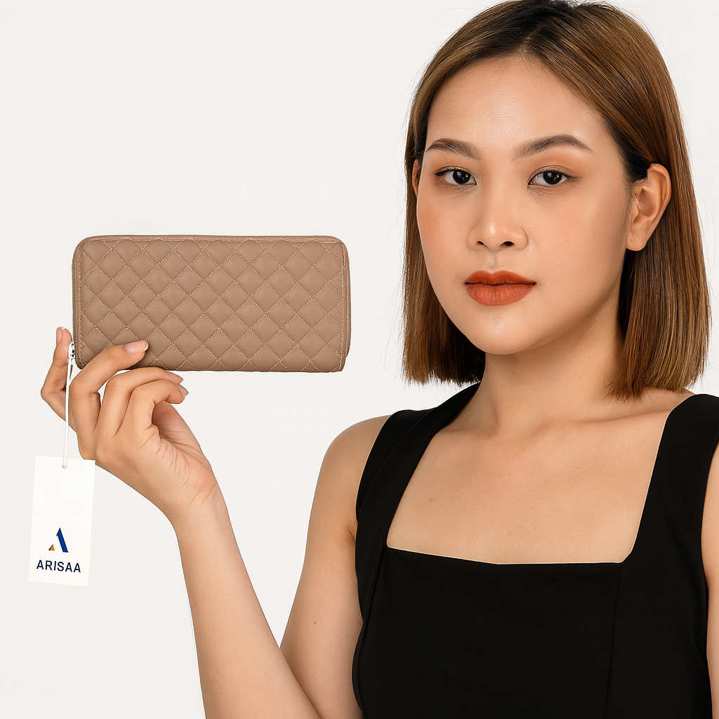 The quilted leather wallet in beige exudes elegance and sophistication, making it a perfect accessory for any occasion. Crafted from high-quality leather, its luxurious texture is complemented by a stylish quilted design, ensuring both durability and aesthetic appeal. This wallet not only offers ample space for cards and cash but also serves as a chic statement piece that can easily be pa. . .