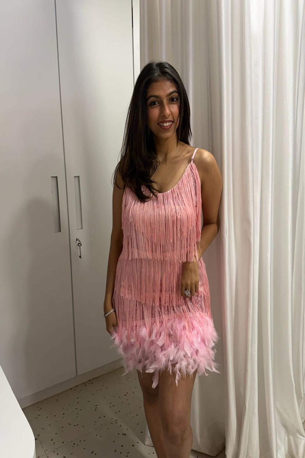 Elevate your wardrobe with our stunning dress, crafted from a unique fringed material that adds a playful yet sophisticated touch. This eye-catching piece is perfect for any occasion, whether you're attending a summer wedding or enjoying a night out with friends. The lightweight fabric drapes beautifully, ensuring comfort and style, while the vibrant colour makes a bold statement. E. . .