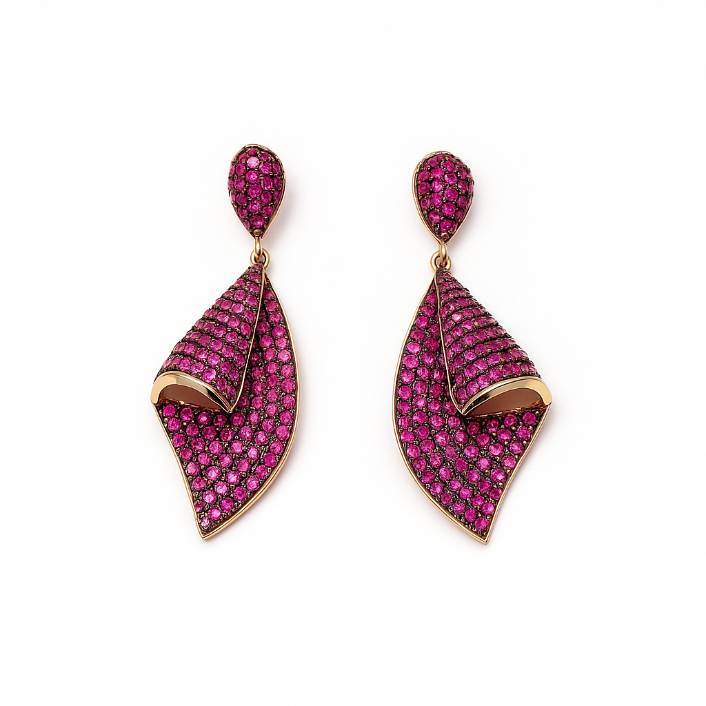 Gold plated micro pave red cubic zirconia dangle drop earring for women