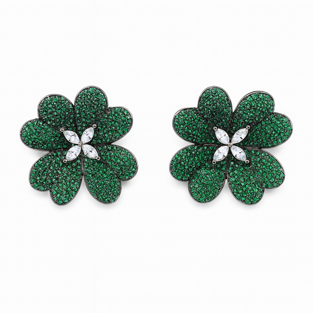 Enhance your look with these stunning green and white diamond clover earrings. The intricate design of the clover shape combined with the sparkling diamonds creates a sophisticated and elegant accessory that will complement any outfit effortlessly.