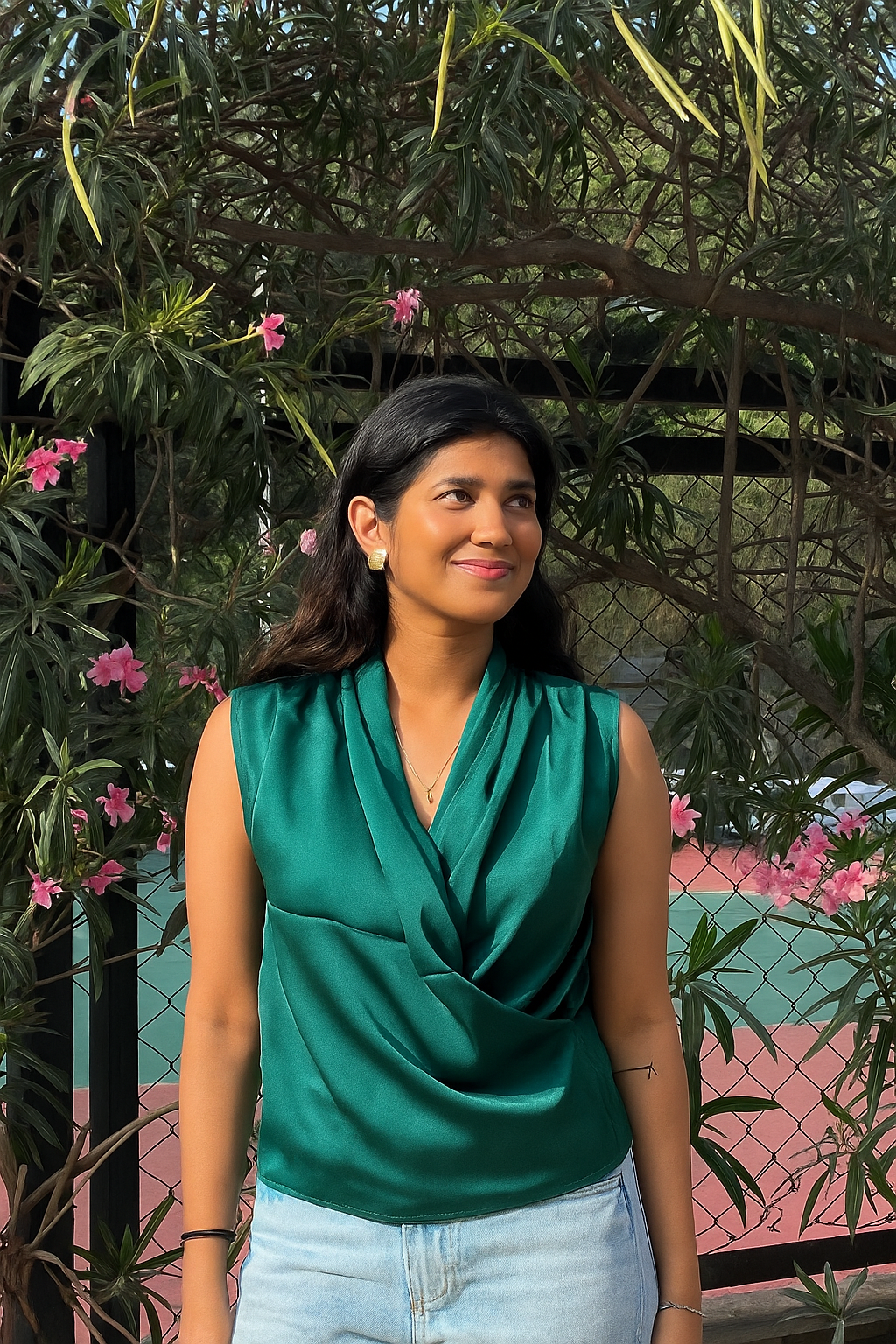 Elevate your wardrobe with this stylish green top featuring a flattering V-neck design. Crafted from high-quality cloth, it offers both comfort and breathability, making it perfect for any occasion. The vibrant green hue adds a refreshing touch to your outfit, while the versatile style allows for easy pairing with jeans, skirts, or shorts. Embrace effortless elegance and make a statement . . .