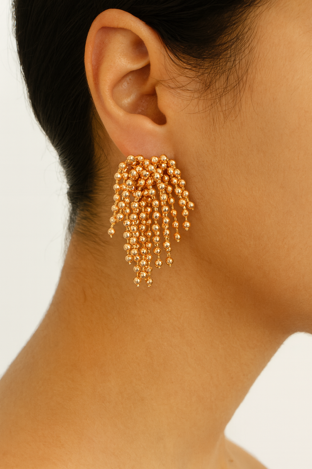 Command attention with these exquisite gold-toned drop earrings, a cascade of shimmering ball chains designed to create dynamic movement and a touch of opulent glamour. Perfect for an evening out, a special event, or whenever you want to make a bold, sophisticated statement, these earrings capture the light beautifully.