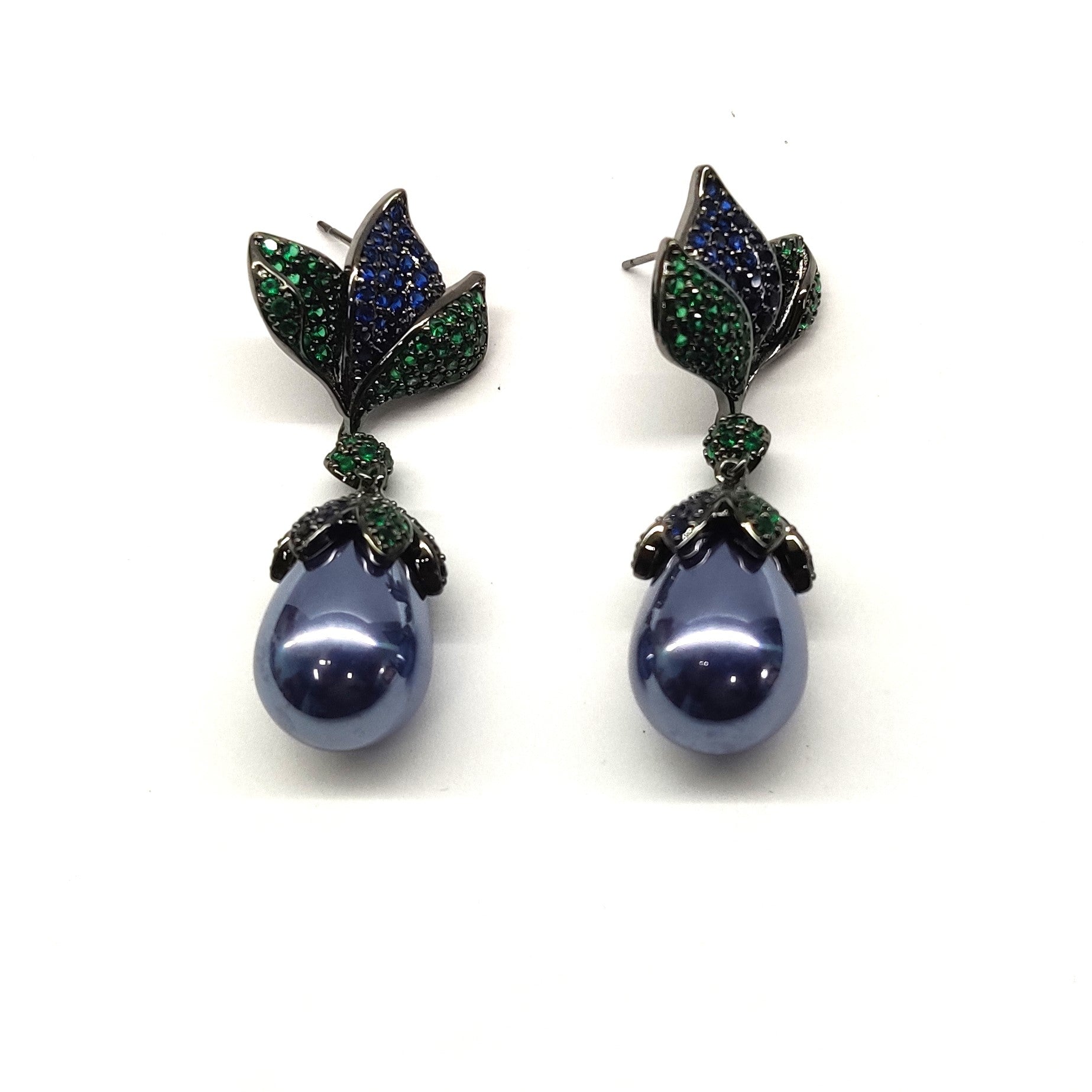 Elevate your accessory collection with these exquisite earrings featuring stunning blue pearls complemented by vibrant green crystals. The harmonious blend of colors creates a striking visual appeal, making them perfect for both casual and formal occasions. Crafted with attention to detail, these earrings offer a touch of elegance and sophistication, ensuring you stand out with every wear. . .