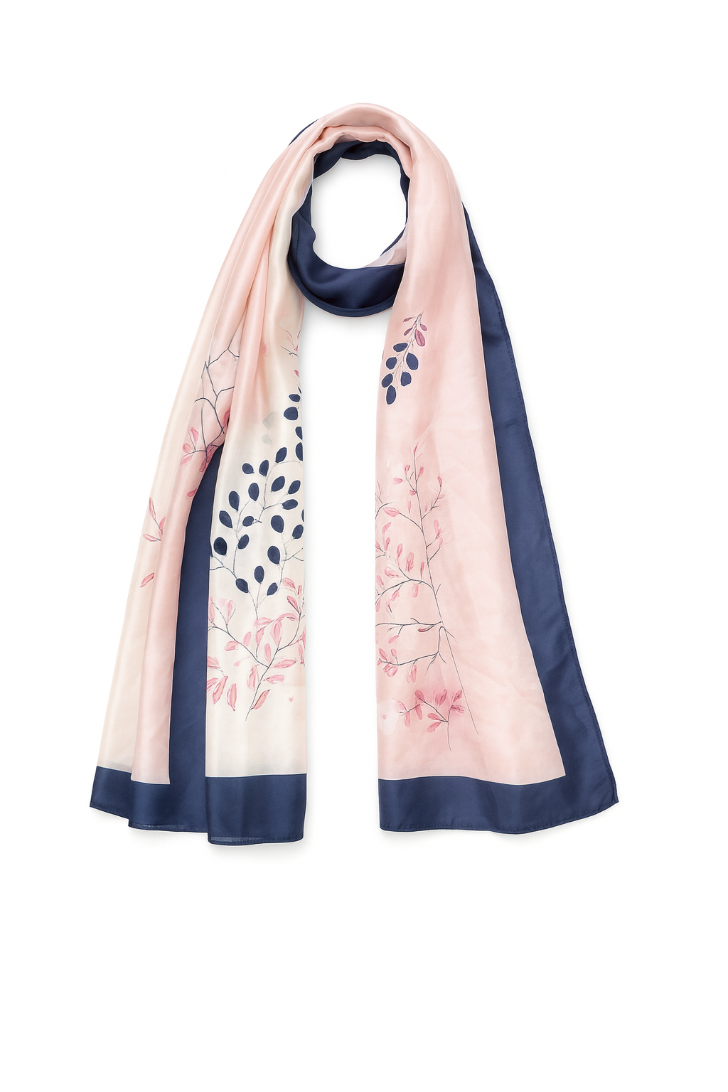 Pink Flower Printed Long Soft Silk Scarf