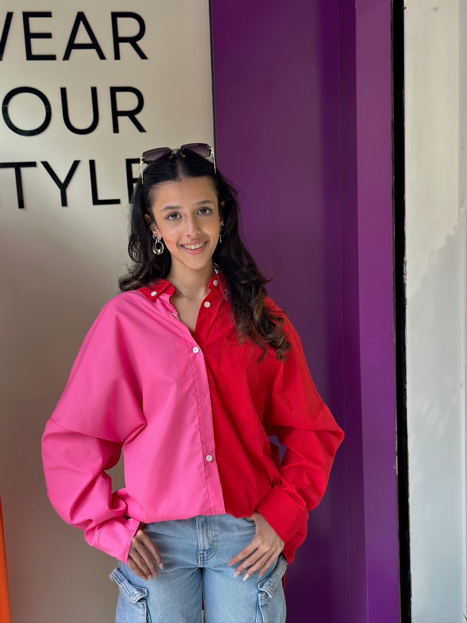Red and pink over size zikzak shirt