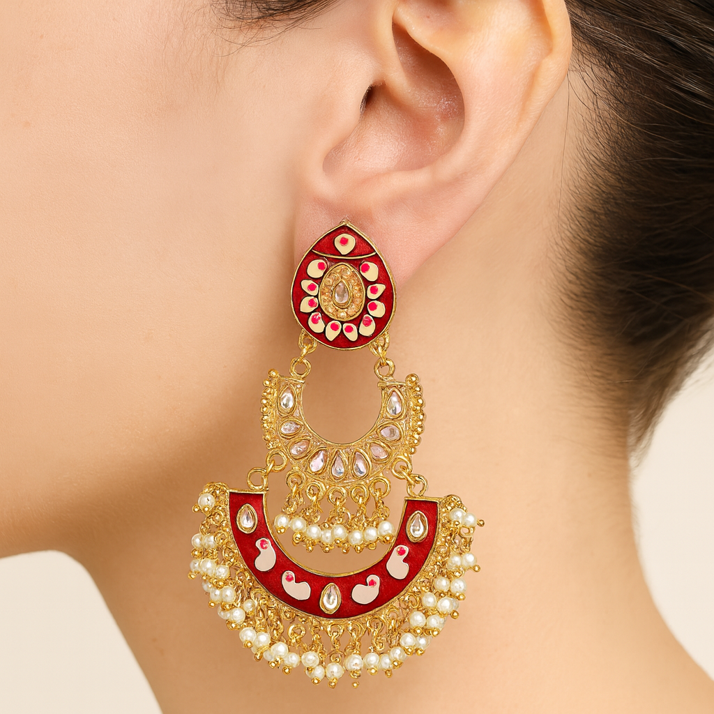 Introducing our exquisite red and gold earrings with pearls, the perfect accessory to elevate any outfit. Crafted with attention to detail, these earrings feature a stunning combination of vibrant red and luxurious gold tones.