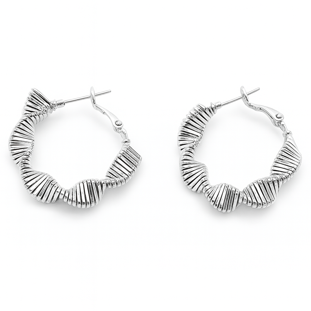 Elevate your accessory collection with these exquisite silver hoop earrings, featuring a unique wave design that adds a touch of elegance and sophistication. Crafted from high-quality silver, these earrings are lightweight and comfortable for all-day wear, making them a perfect choice for both casual and formal occasions.