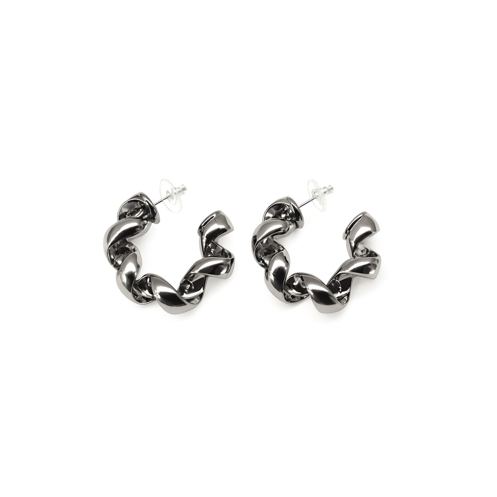 Silver twisted rope circle design earring